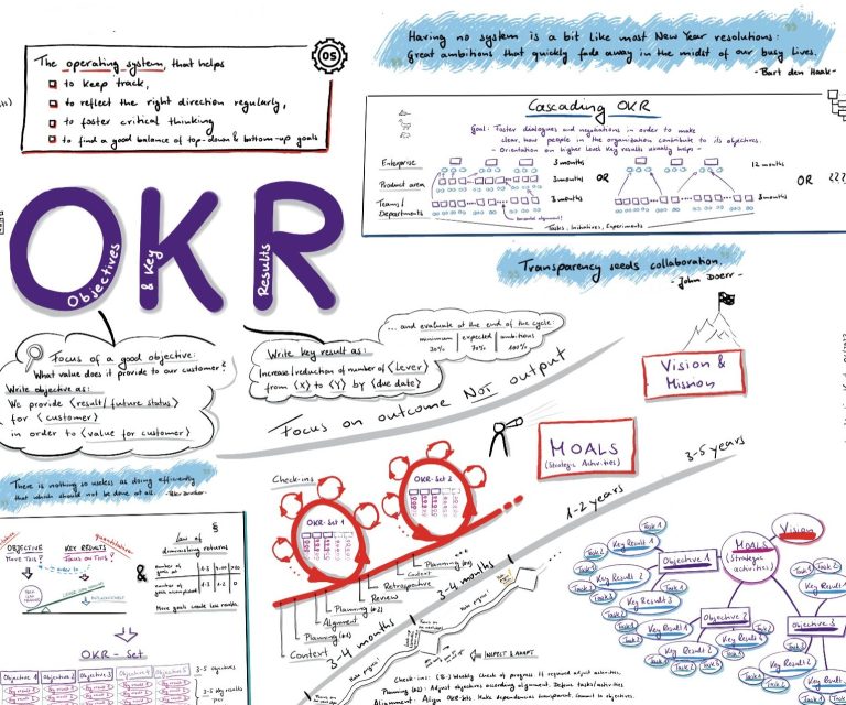 Objectives and Key Results (OKR) ist ein agiles Zielsystem, bei dem ambitionierte, klar formulierte Objectives durch messbare Key Results konkretisiert werden, um Fokus, Transparenz und Ausrichtung der gesamten Organisation auf wenige, wirklich wichtige Prioritäten zu schaffen.